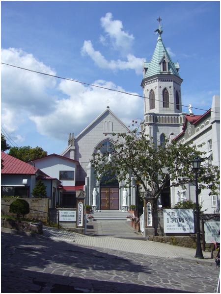 明治13年,法国派遣了9名修女来此传道时所建的修女馆。所以处处溢满着欧风,院内有小店出售“官方”的手制巧克力与饼干,另外还有明信片十字架项链等其他饰物。每个都精致的让我眼睛充血,可大人在一旁别说物件了就是吃的他们也不会让我买的TAT